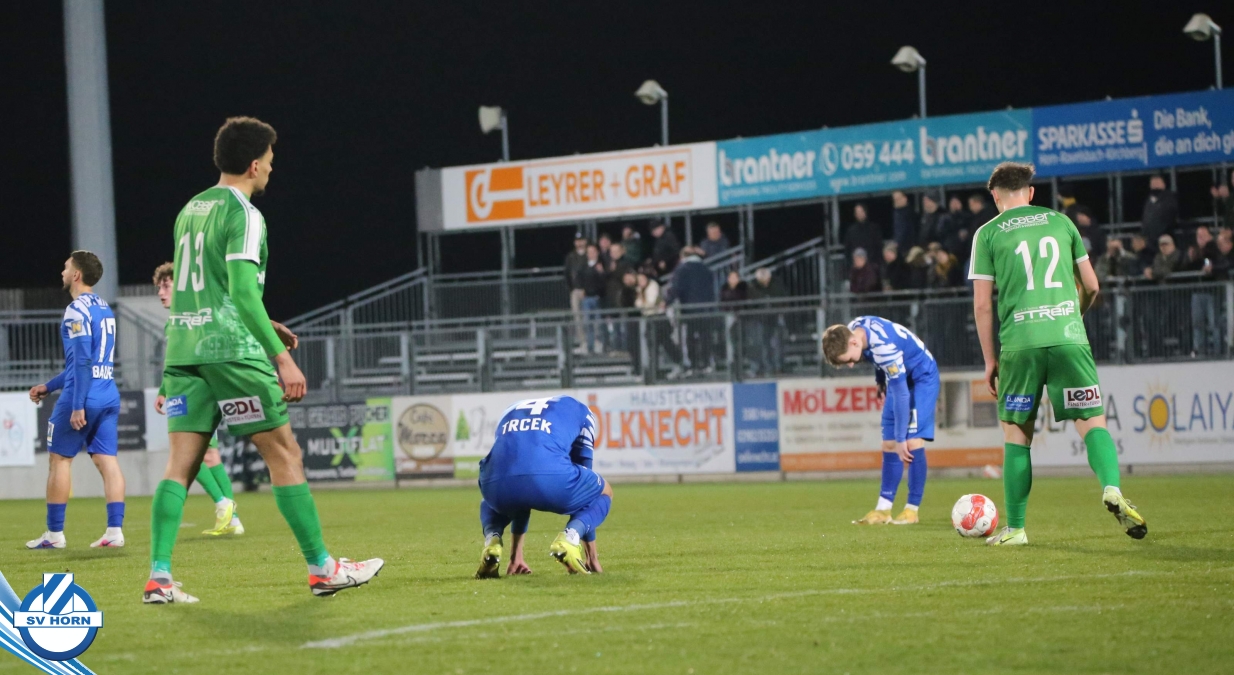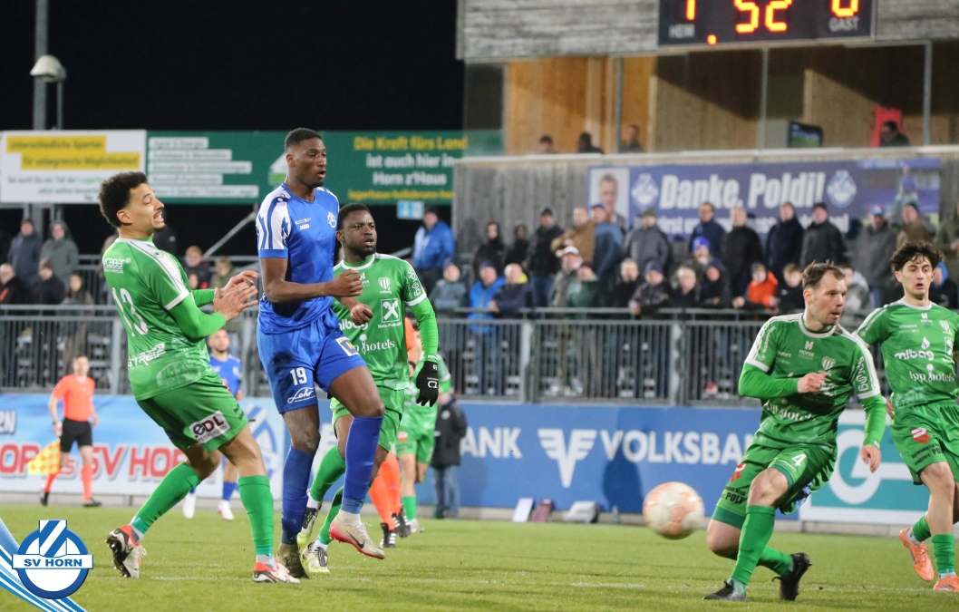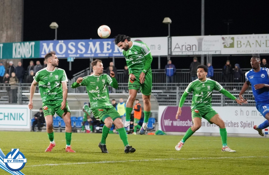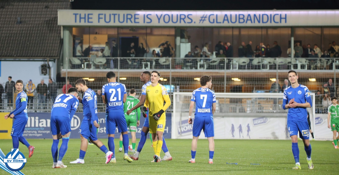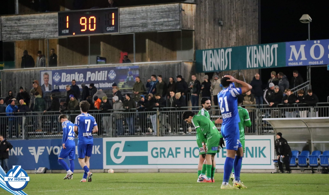 Horn ist bemüht und versucht mit allen Mitteln trotz der vielen Ausfälle und mit ganz vielen jungen Eigenbauspielern noch den Siegestreffer zu erzielen, aber es bleibt beim 1:1 Unentschieden.