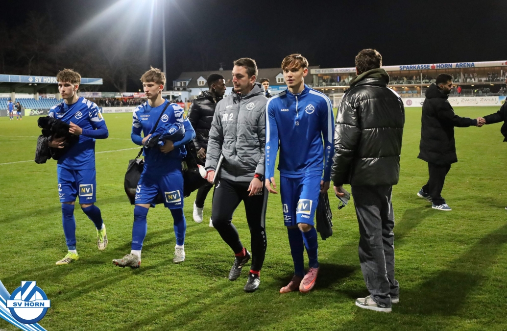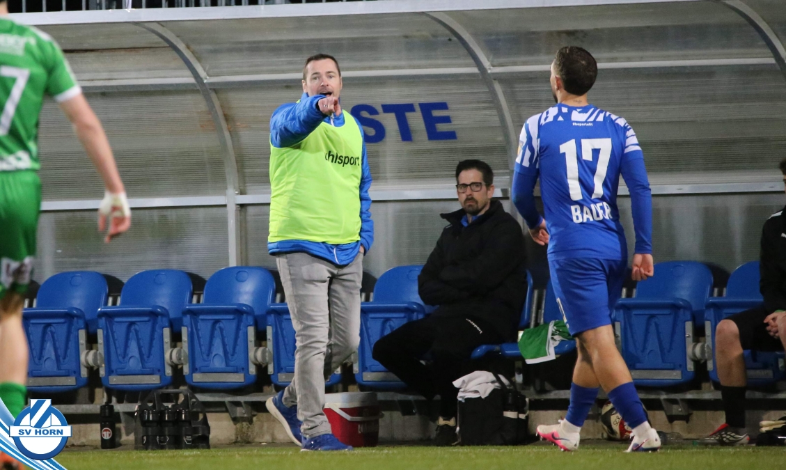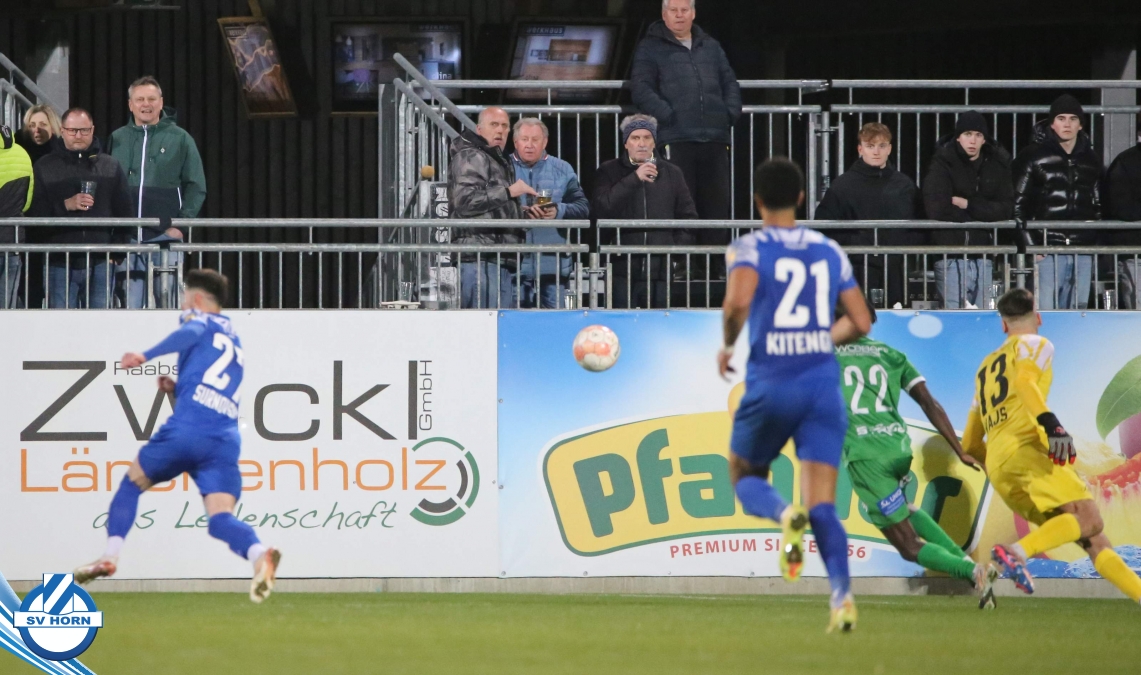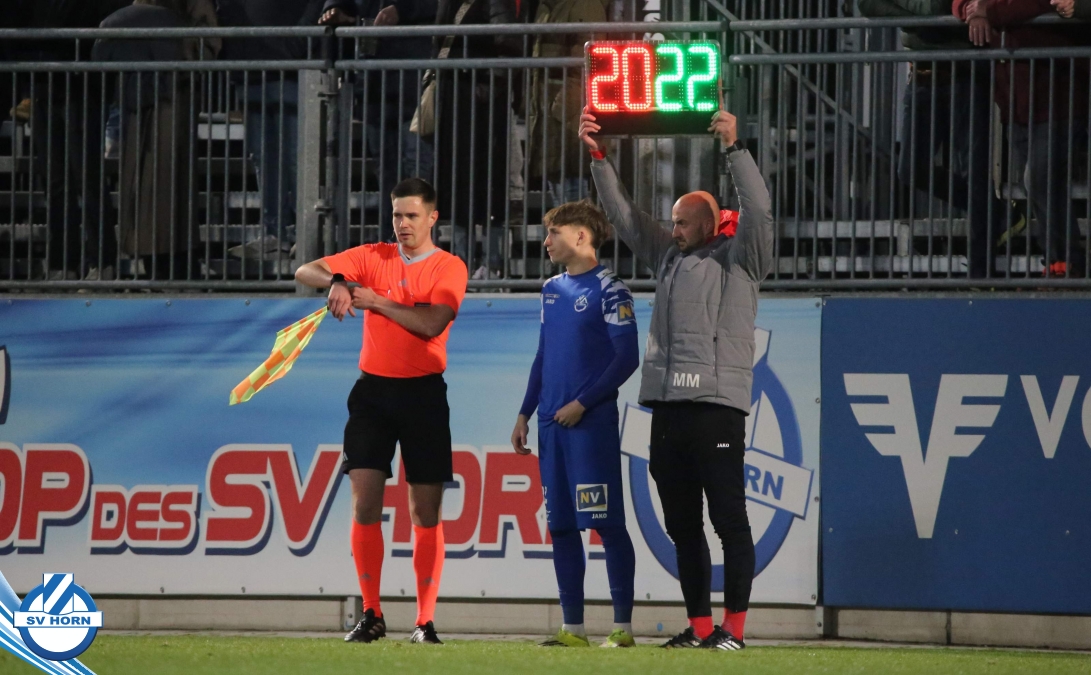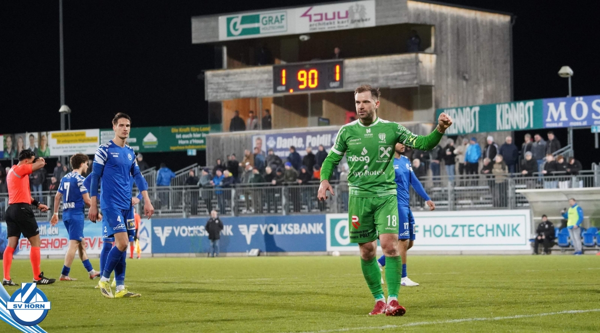 Horn ist bemüht und versucht mit allen Mitteln trotz der vielen Ausfälle und mit ganz vielen jungen Eigenbauspielern noch den Siegestreffer zu erzielen, aber es bleibt beim 1:1 Unentschieden.