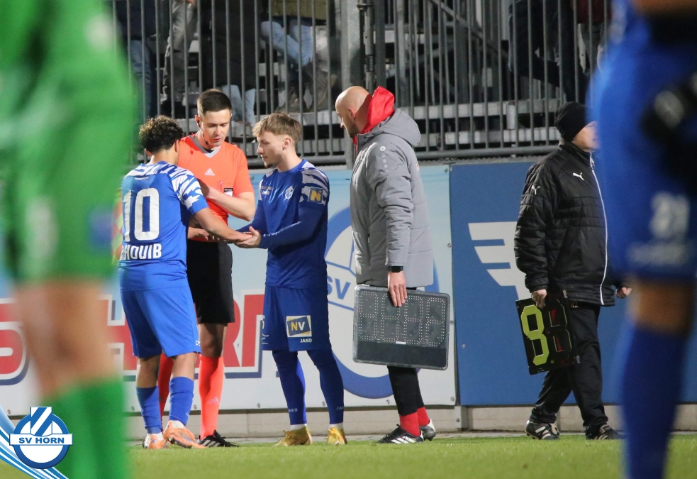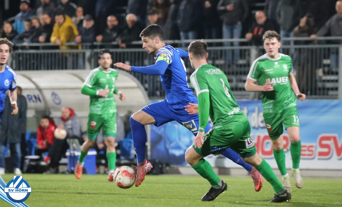 SV Horn spielte mit : Vajs; Drammeh (86. Schellenberger), Bauer, Trcek, Surnovsky, Kokkas, Dhouib (69. Buranich), Mihailovic, Budimir, Kitenge, Hinterleitner (63. Widor)