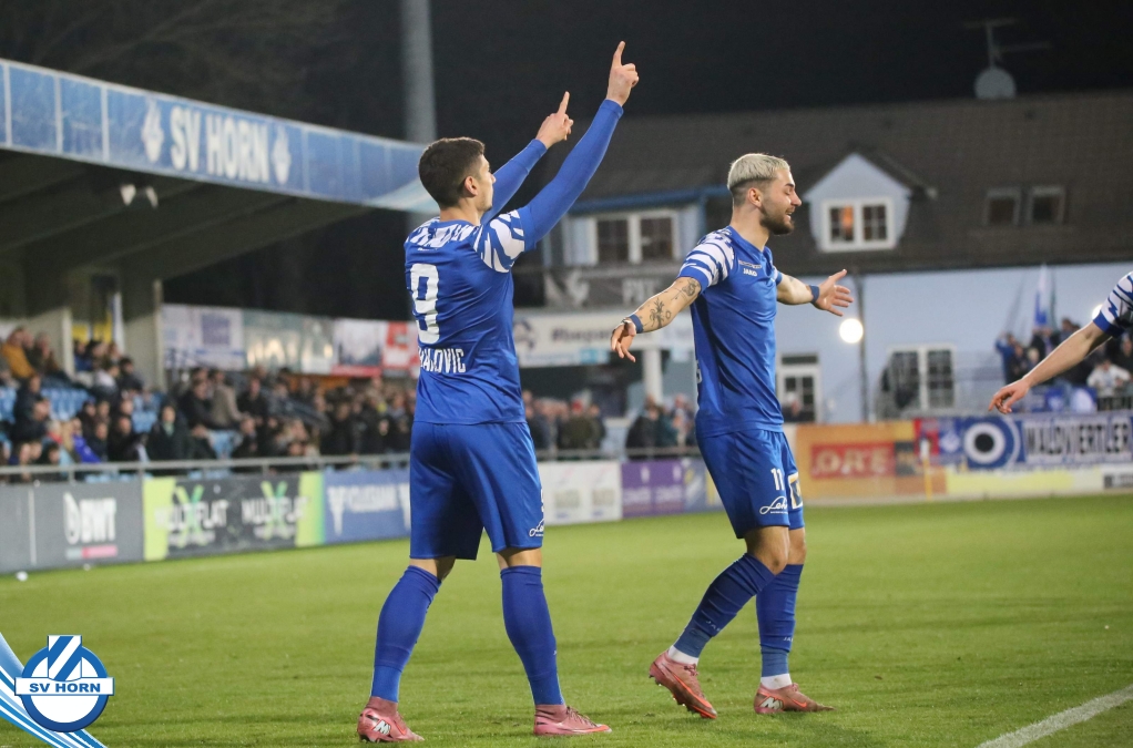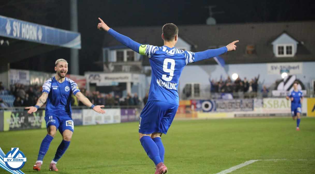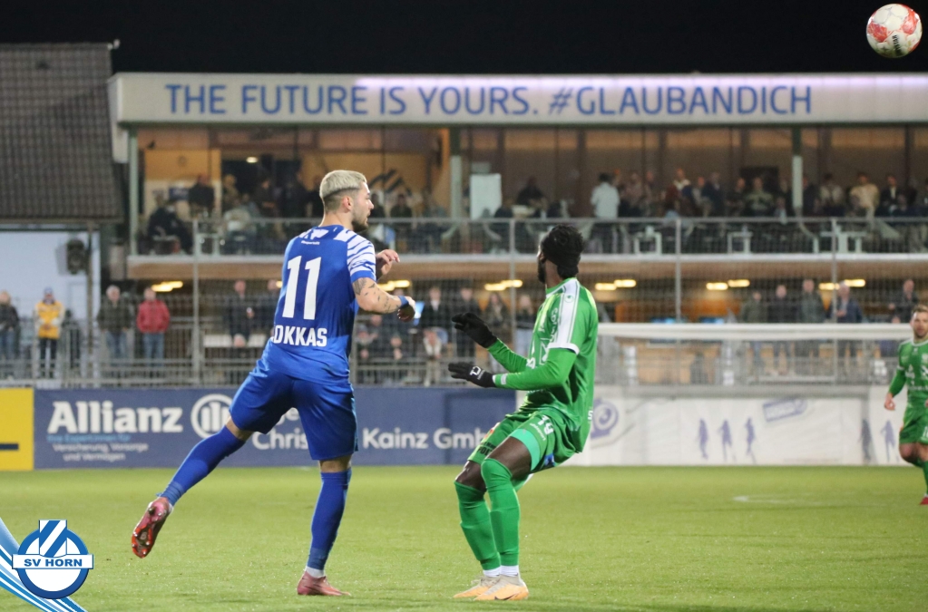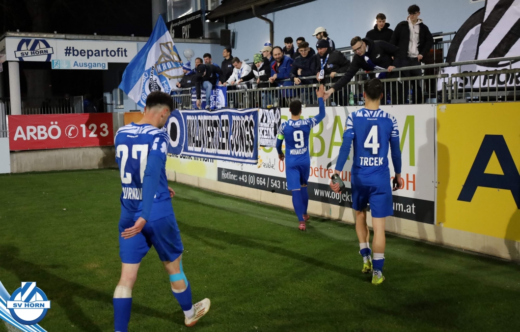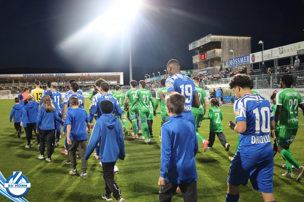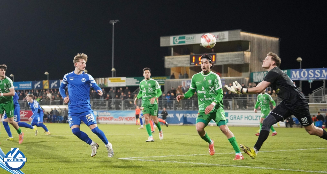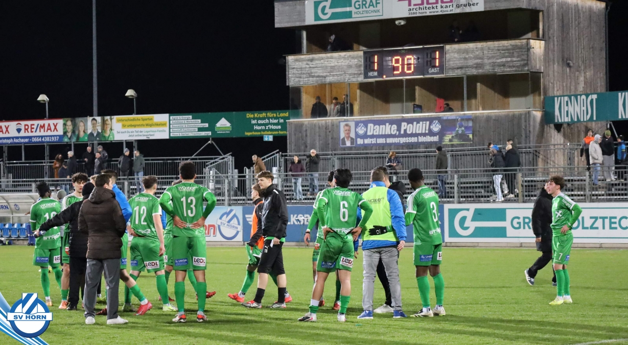 Horn ist bemüht und versucht mit allen Mitteln trotz der vielen Ausfälle und mit ganz vielen jungen Eigenbauspielern noch den Siegestreffer zu erzielen, aber es bleibt beim 1:1 Unentschieden.