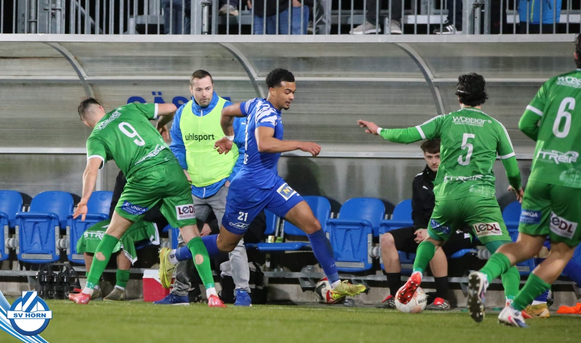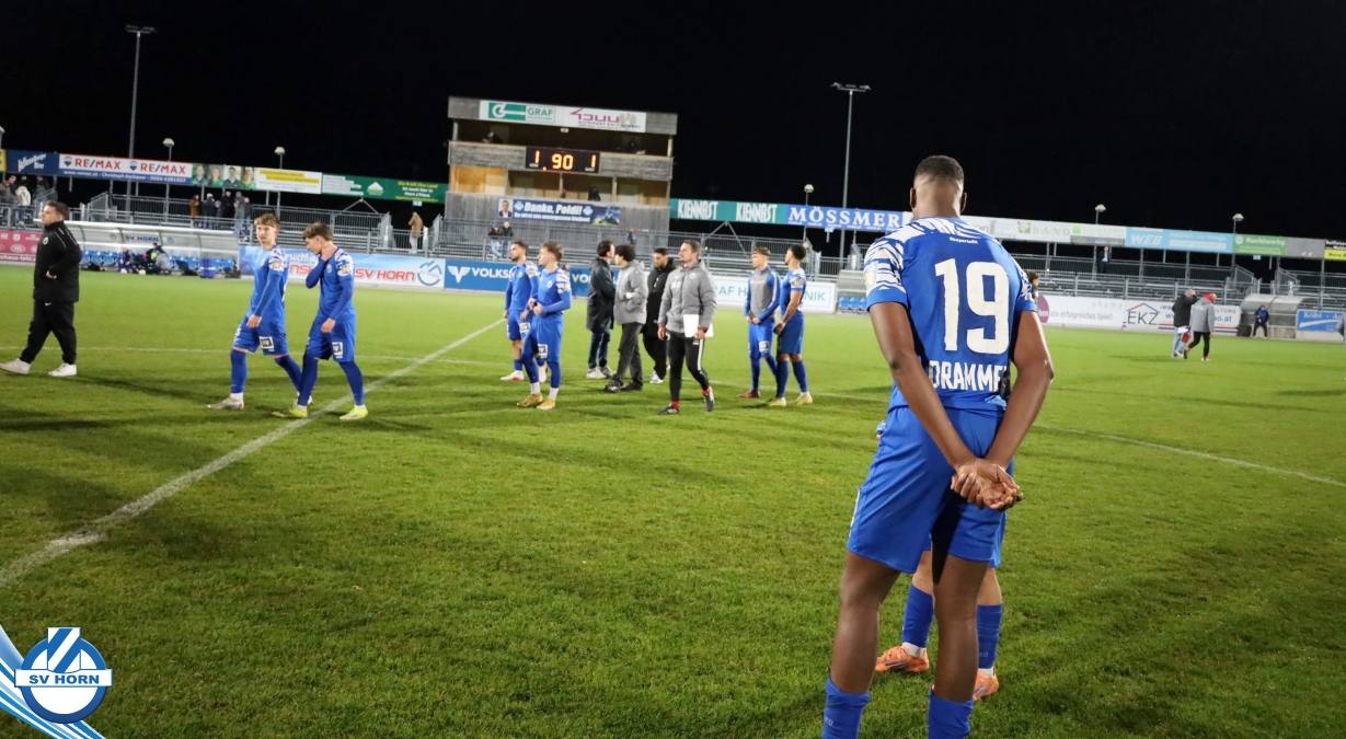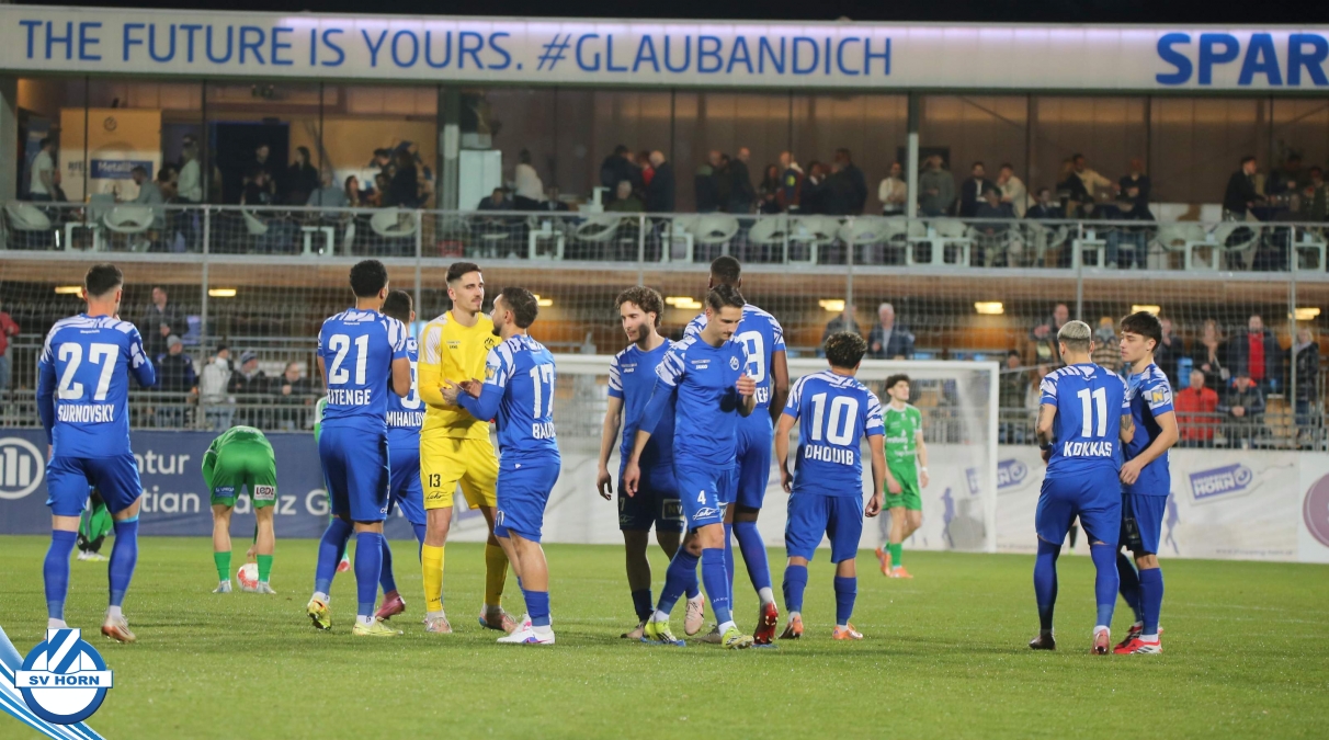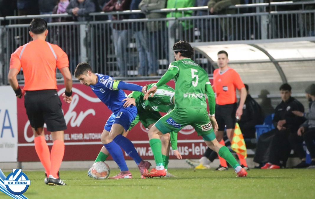 SV Horn spielte mit : Vajs; Drammeh (86. Schellenberger), Bauer, Trcek, Surnovsky, Kokkas, Dhouib (69. Buranich), Mihailovic, Budimir, Kitenge, Hinterleitner (63. Widor)