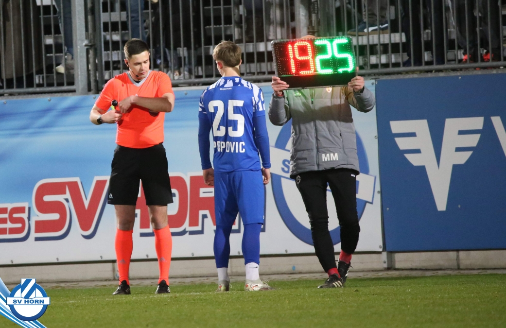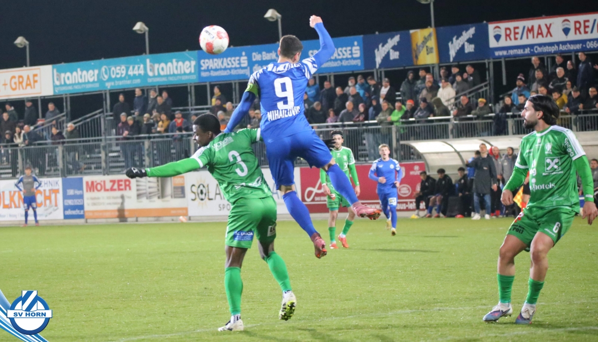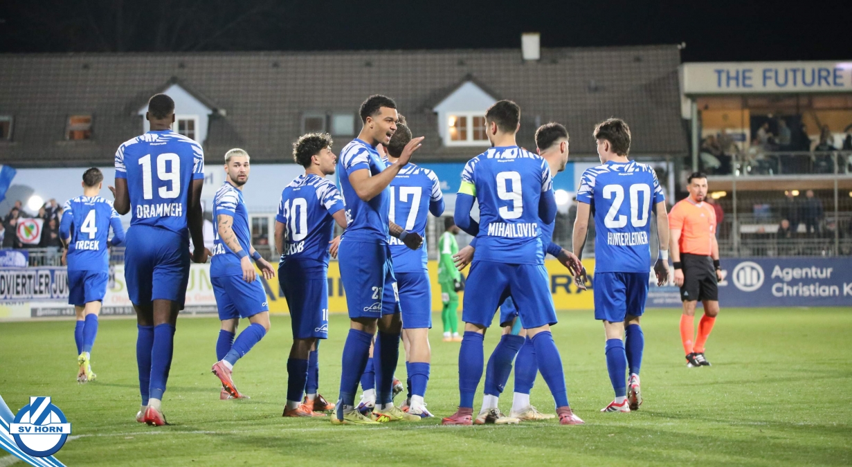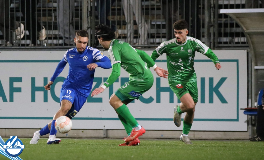 SV Horn spielte mit : Vajs; Drammeh (86. Schellenberger), Bauer, Trcek, Surnovsky, Kokkas, Dhouib (69. Buranich), Mihailovic, Budimir, Kitenge, Hinterleitner (63. Widor)