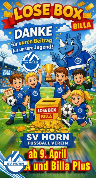 Einfach die Lose in den Geschäften in unsere aufgestellten SV Horn-Losboxen in Horn, Eggenburg oder Gars einwerfen oder unseren Nachwuchstrainern geben!